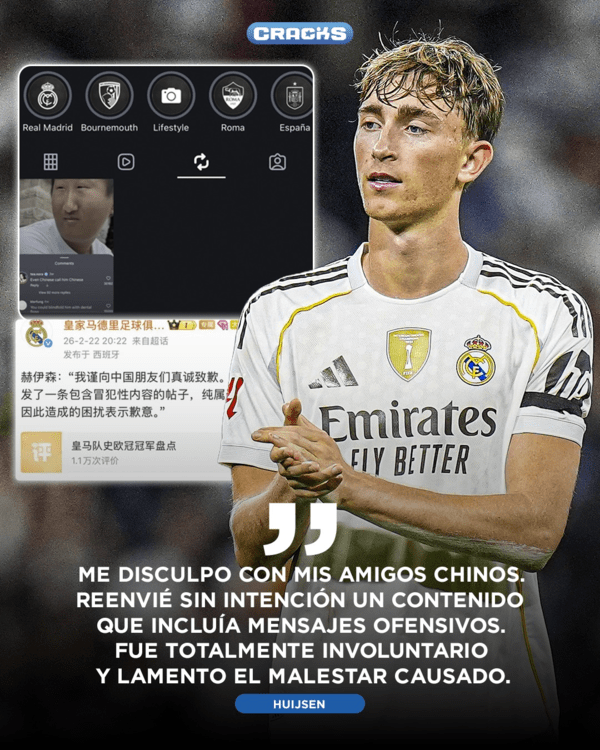 영국 매체 '데일리메일'은 24일(한국시간) "레알 마드리드 CF의 수비수 딘 하위선이 인종차별적이라는 비판을 받은 게시물을 공유한 뒤 사과했다"고 전했다.