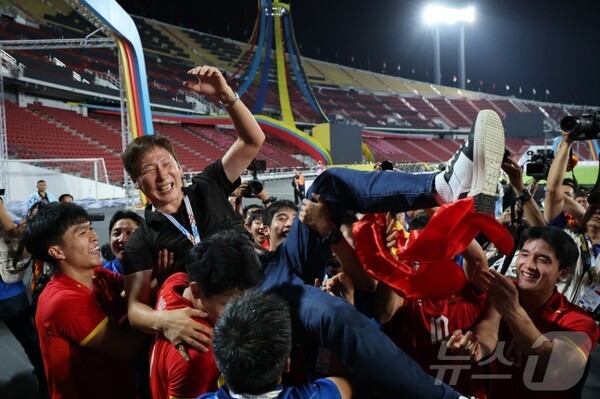 김상식 감독은 지난해 1월 동남아 월드컵으로 불리는 아세안축구연맹(AFF) 미쓰비시일렉트릭컵우승을 시작으로, 7월 AFFU-23챔피언십, 12월 2025 동남아시안게임(SEA)까지 '동남아' 3개 메이저 대회를 모두 제패하는 기염을 토했다.