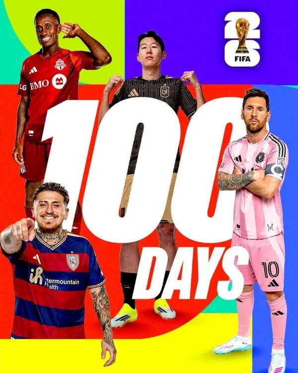 메이저리그사커(MLS)는 4일(한국시간) 공식 채널을 통해 2026 국제축구연맹(FIFA) 북중미 월드컵 개막이 100일 앞으로 다가왔음을 알리는 게시물을 공개했다. "월드컵이 금세 다가올 것이다"라는 문구와 함께 디에고 루나(레알 솔트레이크), 리오넬 메시(인터 마이애미), 손흥민(LAFC), 리치 라리에아(토론토FC) 등 각 국가와 리그를 대표하는 선수들이 등장했다.