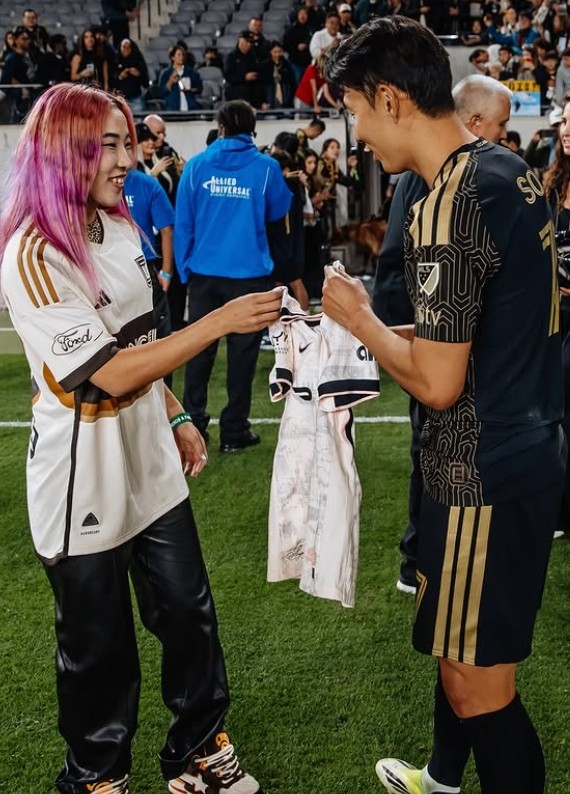 일본 축구 스타도 손흥민 앞에선 그저 소녀 팬 일뿐이었다. LA FC는 9일(한국시간) 구단 공식 채널을 통해 일본 여자 축구 선수 엔도 준이 FC 댈러스와의 경기에 방문했다고 밝혔다. 이에 엔도 준은 경기 날이 아님에도 경기장을 찾아 손흥민과 짧은 대화를 나눴다.