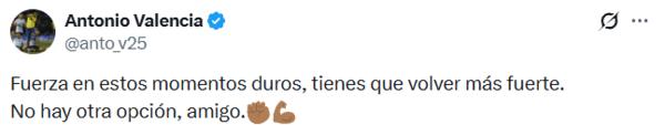 이에발렌시아는 자신의 사회관계망서비스(SNS)를 통해 "힘내라. 이 어려운 시기에 강하게 버텨라. 반드시 더 강해져서 돌아와야 한다. 다른 선택지는 없다, 친구여"라고 응원의 메시지를 보냈다.