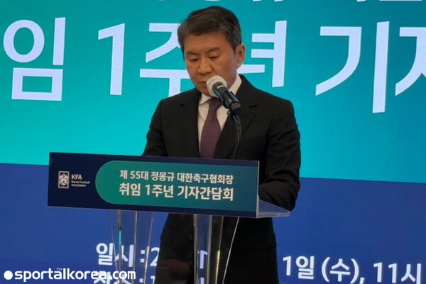 [SPORTALKOREA=신문로] 박윤서 기자= 정몽규 대한축구협회장이 국내서 메가 이벤트를 개최하겠단 각오를 밝히며 "빠르면 빠를수록, 공동보단 단독이 이상적"이라는 입장을 명확히 했다.