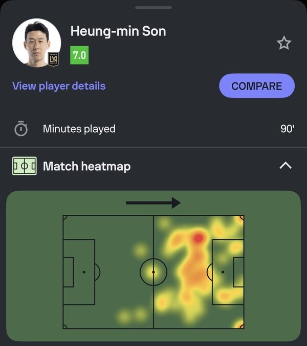 MLS 소식을 전문적으로 다루는 현지 기자 셀소 올리베이라는 12일 자신의 SNS를 통해 "어젯밤 마크 도스 산토스가 무엇을 하려고 했는지 이해할 수 없다. 부드리, 홀링스헤드, 부앙가가 서로 동선이 겹치며 같은 공간으로 들어가고 있었다. 반면 손흥민은 아무런 목적 없이 둥둥 떠다니기만 했다. 팀이 너무 한쪽으로 치우쳐 있었다"고 지적하며 선수들의 히트맵을 공개했다.