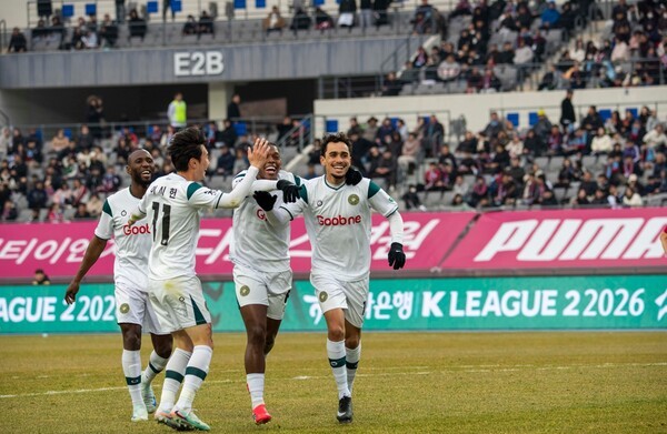 김포는 14일 토요일 오후 4시 30분 하나은행 K리그2 2026 3라운드 경기에서 디자우마, 박동진, 루안의 골로 신생팀 용인을 3대 1로 격파했다.