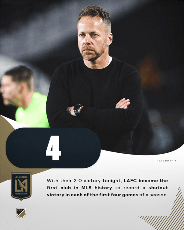 여기에 역사적인 기록까지 세웠다. 경기 종료 후 MLS 사무국 홍보팀은 사회관계망서비스(SNS)를 통해 "LAFC는 MLS 역사상 처음으로 시즌 첫 4경기에서 모두 무실점 승리를 거둔 팀이 됐다"고 발표했다.