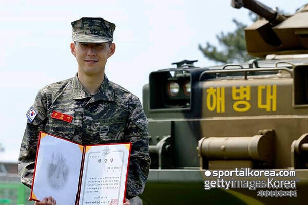 손흥민은 2018 자카르타-팔렘방 아시안게임 금메달로 병역 특례를 받았고, 이후 2020년 제주 서귀포 해병대 9여단 훈련소에서 3주간 기초군사훈련을 이수했다. 당시 약 150여 명의 훈련병 중 종합 1위를 기록하며 화제를 모으기도 했다.