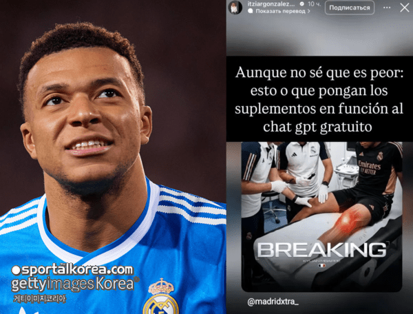 영국 매체 '데일리메일'은 25일(이하 한국시간) "음바페의 무릎 부상이 오진에서 비롯됐으며, 구단의 의료진이초기 검사에서 잘못된 다리를 촬영했다는 주장이 제기됐다. 여기에 전 구단 영양사가 '무료 챗GPT 결과를 기반으로 보충제를 처방한다'고 비판하며 논란이 확산되고 있다"고 보도했다.