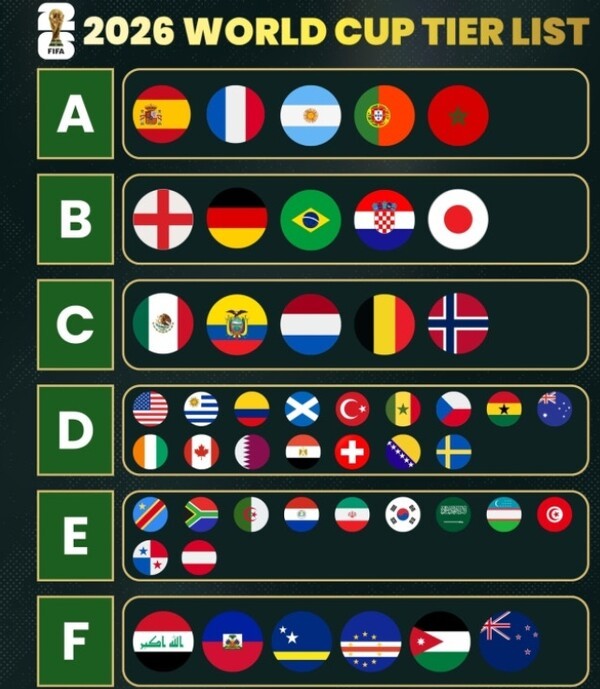 - 축구 전문 매체 더 터치 라인은 2일퍼플렉시티 AI가 분석한 북중미 월드컵 티어리스트를 공개했다.