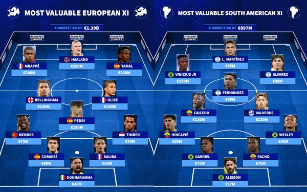 - 이번 대회는 기존 32개국에서 48개국으로 확대된 첫 월드컵으로 역대 최대 규모가 될 전망이라며 대륙별 최고 몸값 베스트 11을 공개했다.