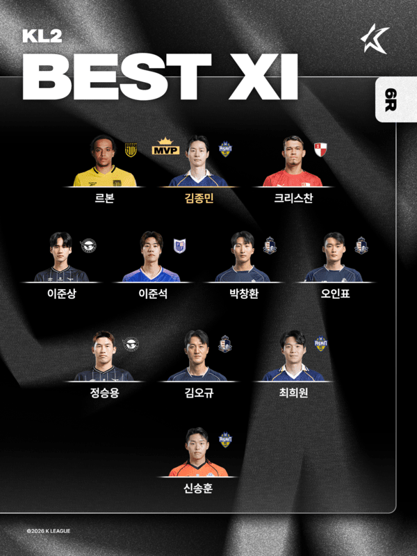 [하나은행 K리그2 2026 6R MVP, 베스트 팀/매치, 베스트11]