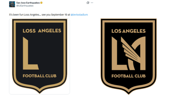문구 자체는다음 맞대결을 기약하는 평범한 내용이었지만, 함께 첨부된 사진에는조롱의 의미가다분했다. 산호세는 LAFC의 공식 엠블럼을 교묘하게 훼손했다. 상단에 위치한 지역명 'LOS ANGELES'에서 'LOS'를 패배·상실을뜻하는 'LOSS'로 바꿨다.
