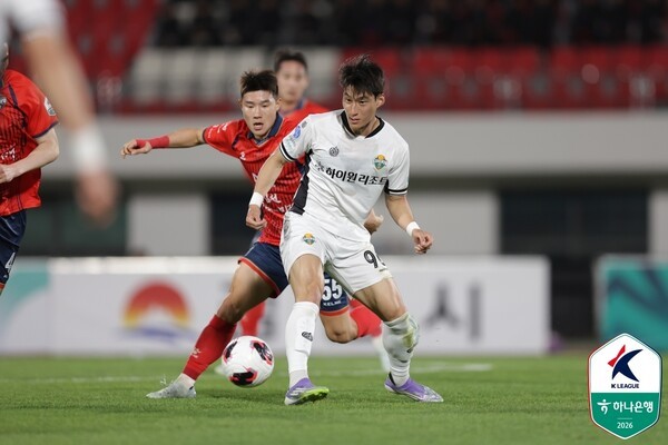이날 홈 팀 김천은 4-4-2 포메이션을 꺼냈다. 백종범이 최후방을 지켰다. 박철우-이정택-변준수-김태환이 포백을 형성했다. 김주찬-박태준-이수빈-전병관이 중원에배치됐다. 강민규-박세진이 최전방을 맡았다.