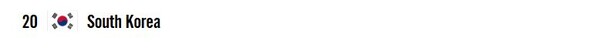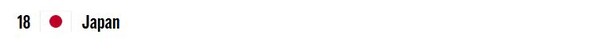 - 아시아권 1위는 한국보다 두 계단 앞선 전체 18위에 이름을 올린 일본이 차지했다.