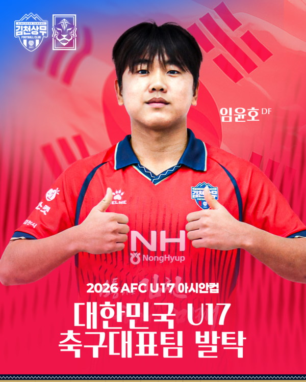 - 나라를 대표해 가는 만큼 이기기 위해서 최선을 다할 것 김천상무프로축구단(대표이사 이재하) U-18의 임윤호(경북미용예술고등학교)가 대한민국을 대표해2026 AFC U-17아시안컵에 참가한다.
