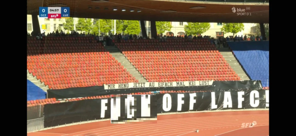 참다못한 팬들은 부진의 원인을 지난 2024년 1월 구단의 최대 주주로 등극한 LAFC의 탓으로 돌리며 단체 행동에 나섰다. 매체에 따르면 팬들은 26일 스위스 취리히의 슈타디온 레치그룬트에서 열린 FC 루체른과의 홈경기에서 구단을 규탄하는 걸개를 내걸었다. 첫 번째 걸개에는 "우리는 지금 그냥 그러고 싶지 않다"는문구가 적혀 있었고, 이어진 두 번째"LAFC 꺼져라!"라는 원색적인 비난이 담겨 있었다.