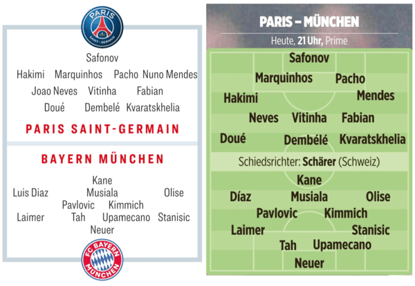다만 선발 출전 여부는 미지수다. 독일매체들은 일제히 두 선수의 벤치 출발을 점치고 있다. '키커'와 '빌트'가 공개한 예상 라인업에 따르면, 뮌헨은 4-2-3-1 포메이션을 바탕으로,센터백 라인에 김민재 대신 요나탄 타와 다요 우파메카노를 세울 것으로 전망했다. PSG는4-3-3 포메이션으로 예측했고,이강인을 빼고데지레 두에의 이름을 올려 놓